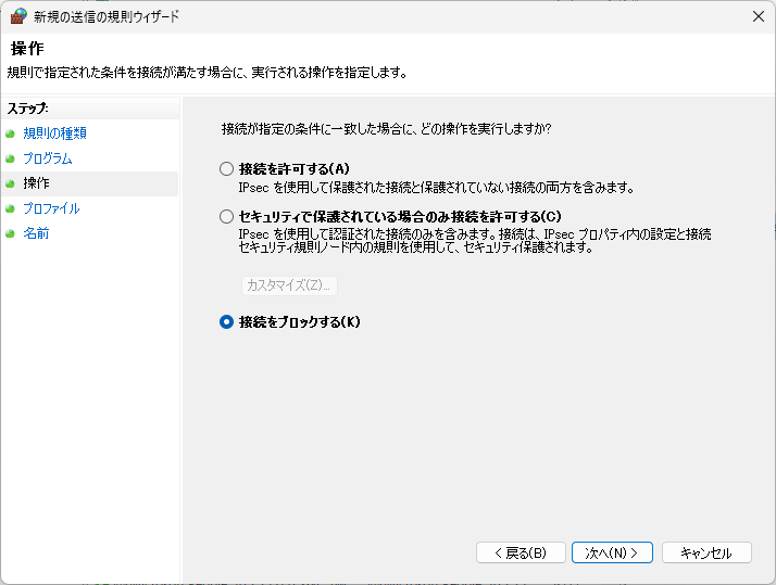 次のページでこの規則の名前と説明の入力を求められるので適当に入れて完了。